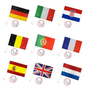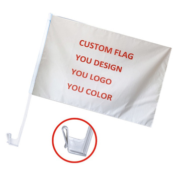 Özel tasarım tek dikiş çift dikiş Het kesme plastik direk ile bayrak % 100% Polyester özel araba pencere bayrağı